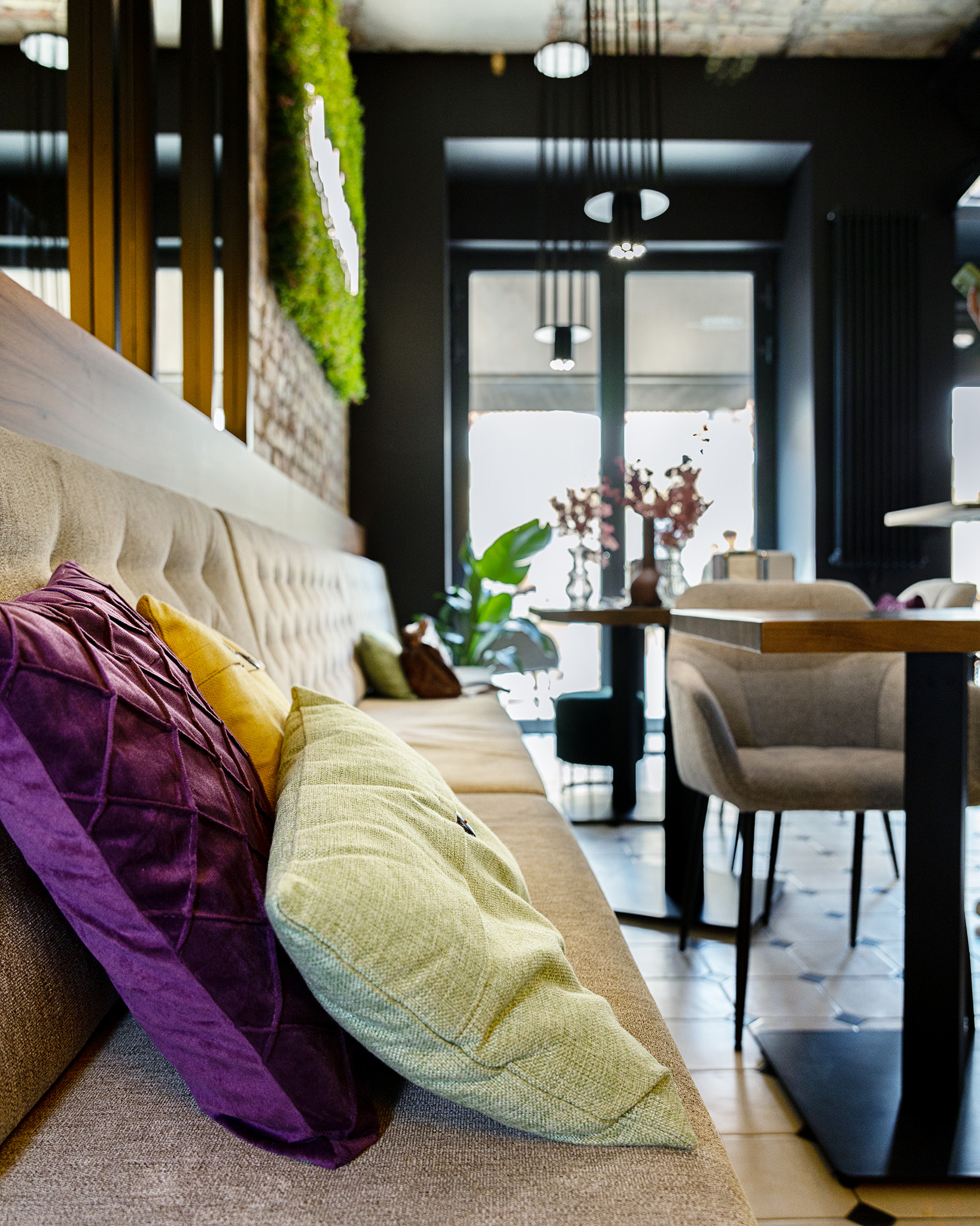 • Uwydatnienie oryginalnych elementów, takich jak stare cegły na ścianach i suficie.