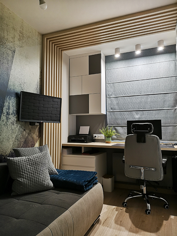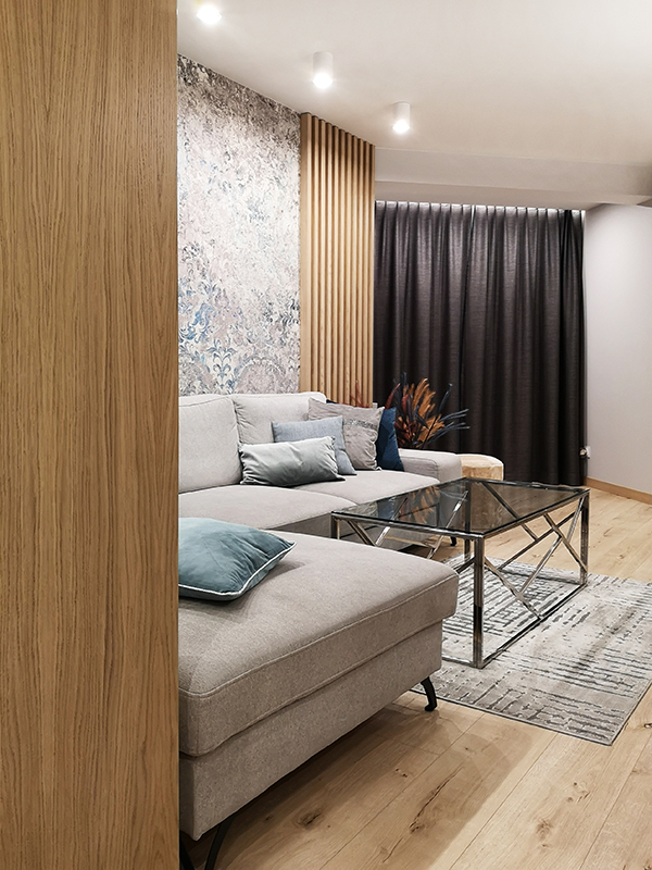 To mieszkanie w centrum miasta, pochodzące z początku lat 2000, przeszło gruntowną metamorfozę. Przestarzały układ funkcjonalny i zużyte materiały wymagały całkowitej modernizacji. Przeprowadziliśmy szereg zmian, dzięki którym wnętrze stało się bardziej przestronne, ergonomiczne i dopasowane do współczesnych potrzeb.